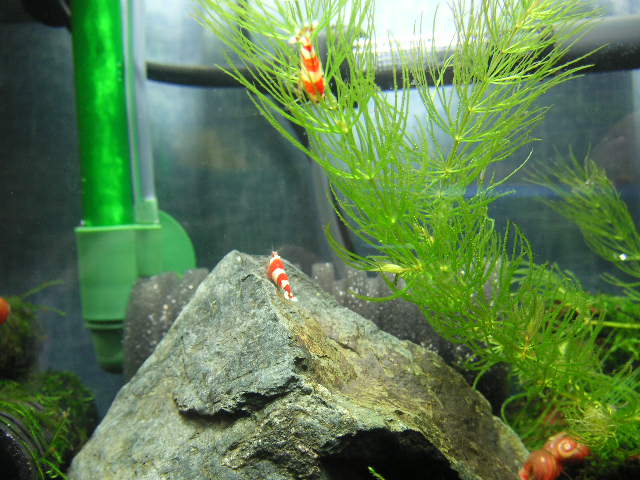 そちらの店長さんに、レッドビーシュリンプのろ過器には底面フィルター&スポンジフィルター。小型水槽ならスポンジフィルターが絶対いい!と教えていただきました。